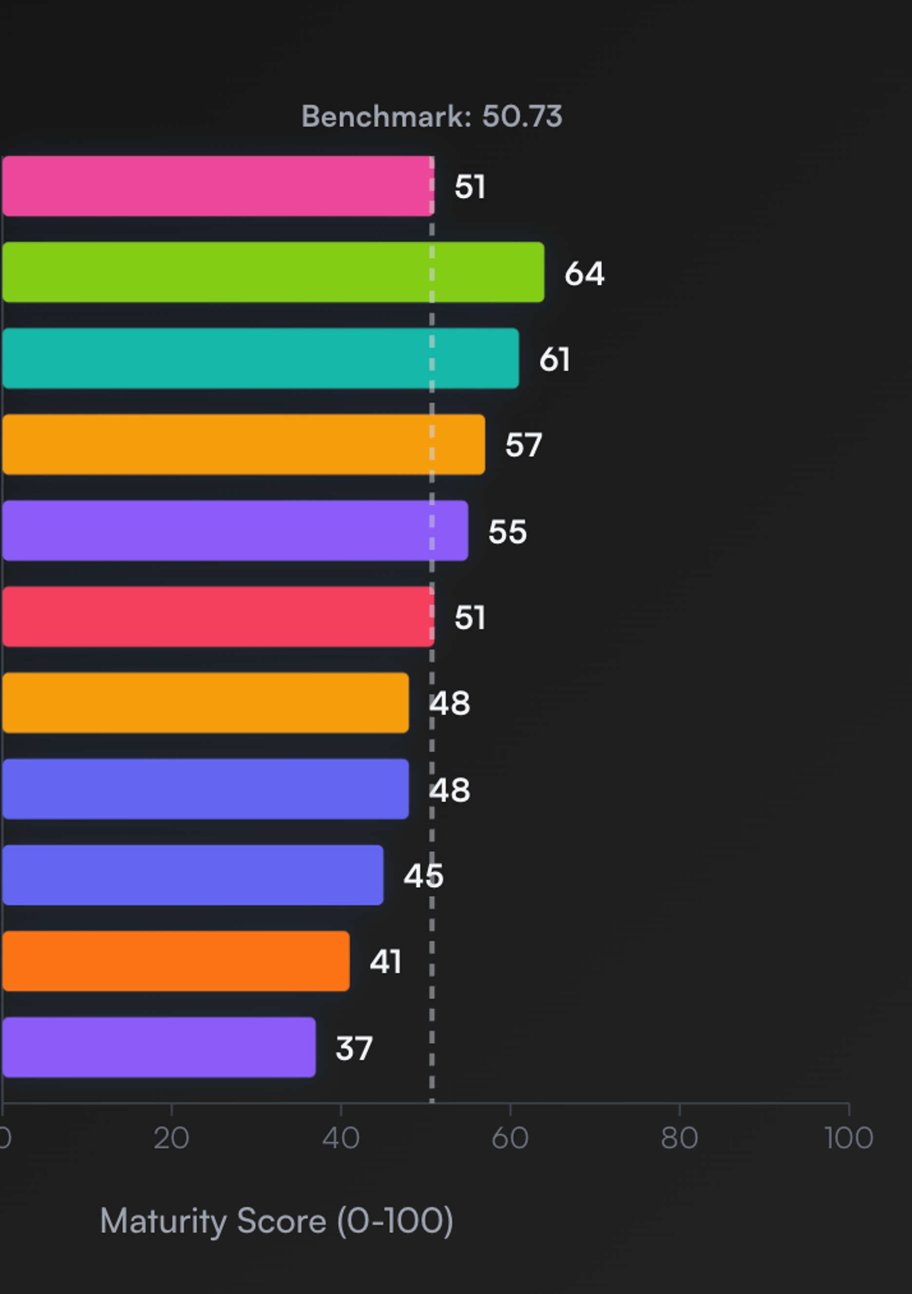 Understand your sustainability maturity on a 0-100 scale. See how you compare to industry benchmarks and identify where to focus your efforts for maximum impact